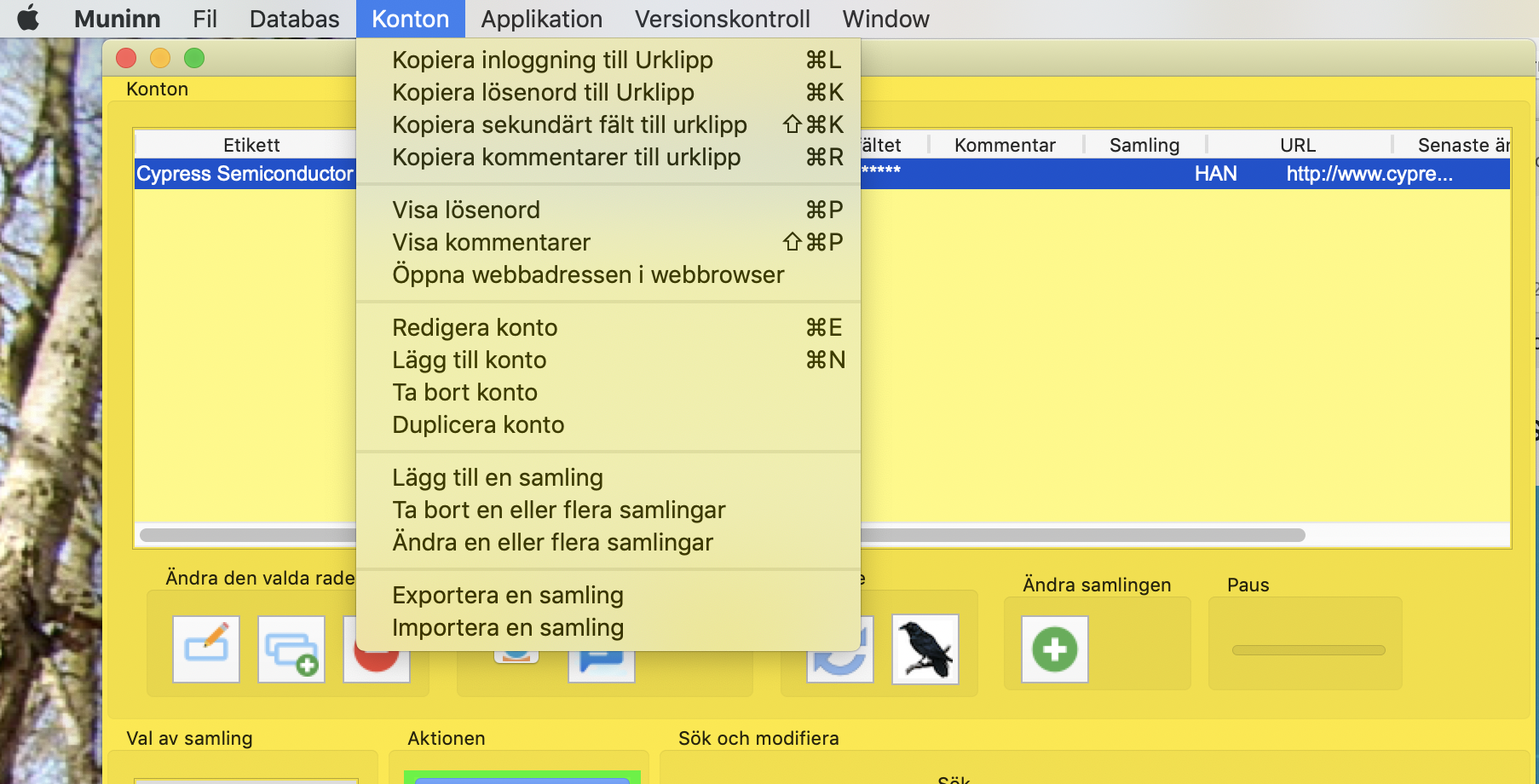 - Het tonen van de wachtwoorden en kommentaar gaat via (⇧)+⌘+P.