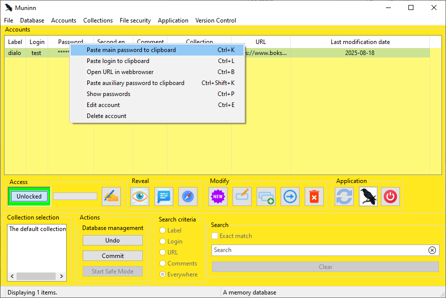 Muninn is een password manager applikatie die veilig en doelmatig logins, gevoelige gegevens en passwords opslaat op het eigen systeem zonder abonnement en cloud toegang. Met Muninn kunnen op een eenvoudige manier password worden opgeslagen en gezocht.